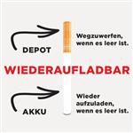 - Wiederaufladbare E-Zigarette (Akku und austauschbare Depot)